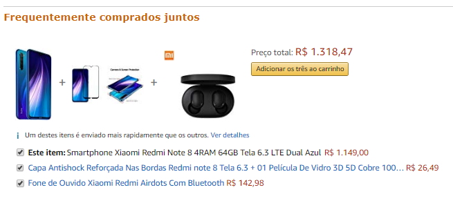 Um exemplo prático desse método é montar um combo com capinhas, película protetora e fones de ouvido nos anúncios de smartphones. Observe na imagem abaixo: