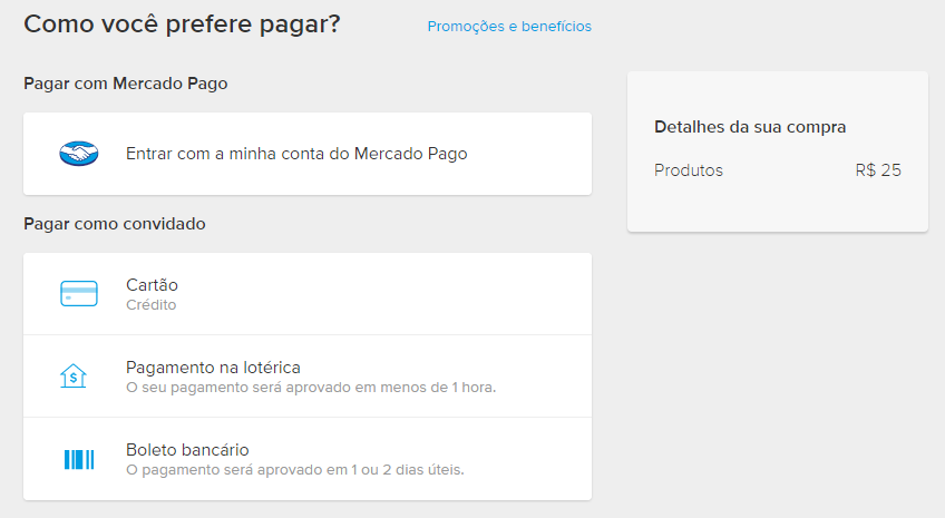 4) A tela abaixo mostra o que o cliente vê quando você envia o link do Mercado Pago para ele.